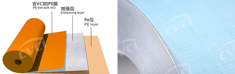 織物增強(qiáng)型防銹膜是一項(xiàng)專利產(chǎn)品,滿足國際綠色環(huán)保要求,具有高強(qiáng)度、耐戳穿、耐撕裂,全塑結(jié)構(gòu),安全環(huán)保、可印刷等性能。
